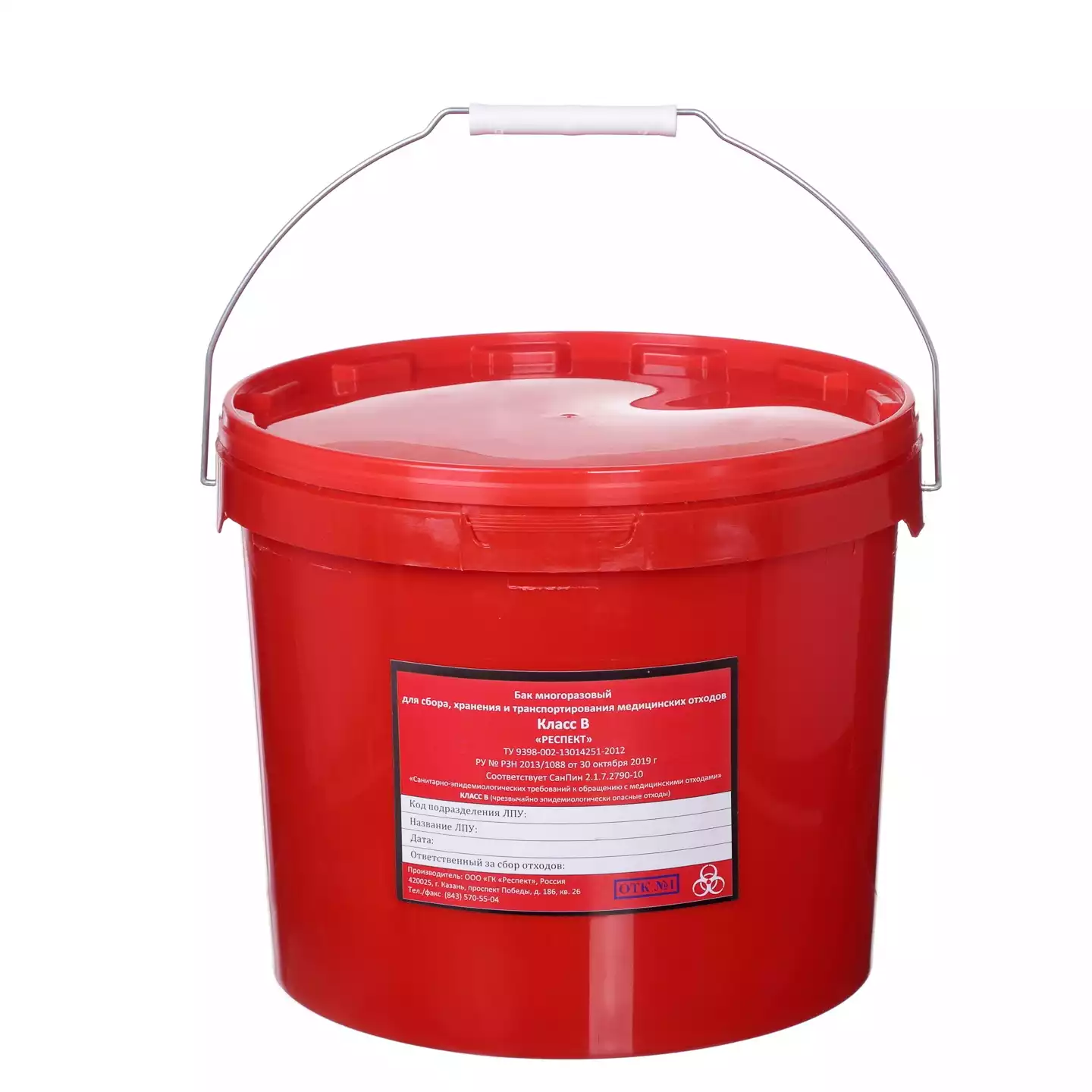Бак 12,0л для сбора, хранения медицинских отходов (класс В), с крышкой, цвет красный, многоразовыйРеспект ГК (РОССИЯ)