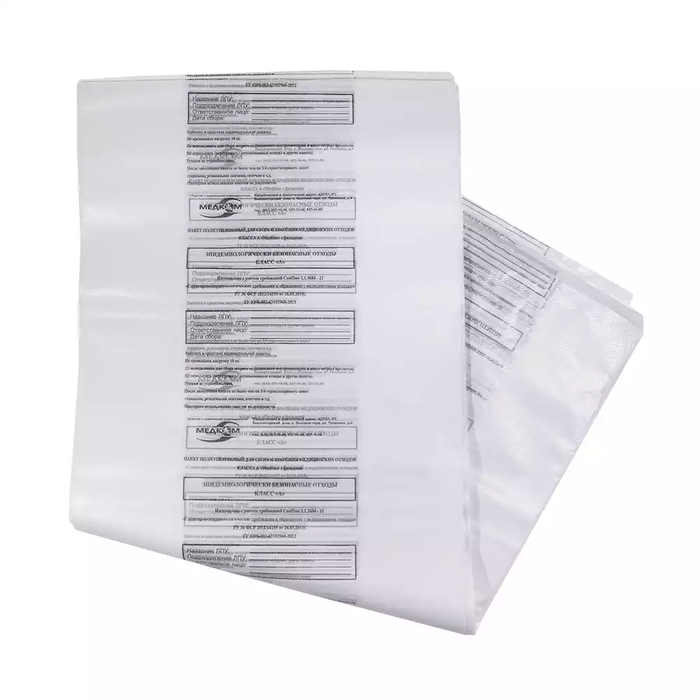 Пакет для сбора медицинских отходов, класс А(белый) размер 600*1000мм, объем 90-100л, плотность 12 микронМедКом НПФ (РОССИЯ), 100 шт