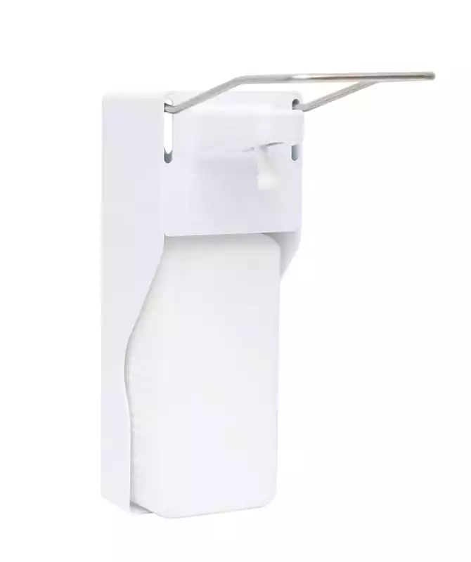 Дозатор локтевой МДУ-10 с металлической ручкой, в комплекте с бутылкой 1,0л, цвет - белыйХимактив (РОССИЯ)