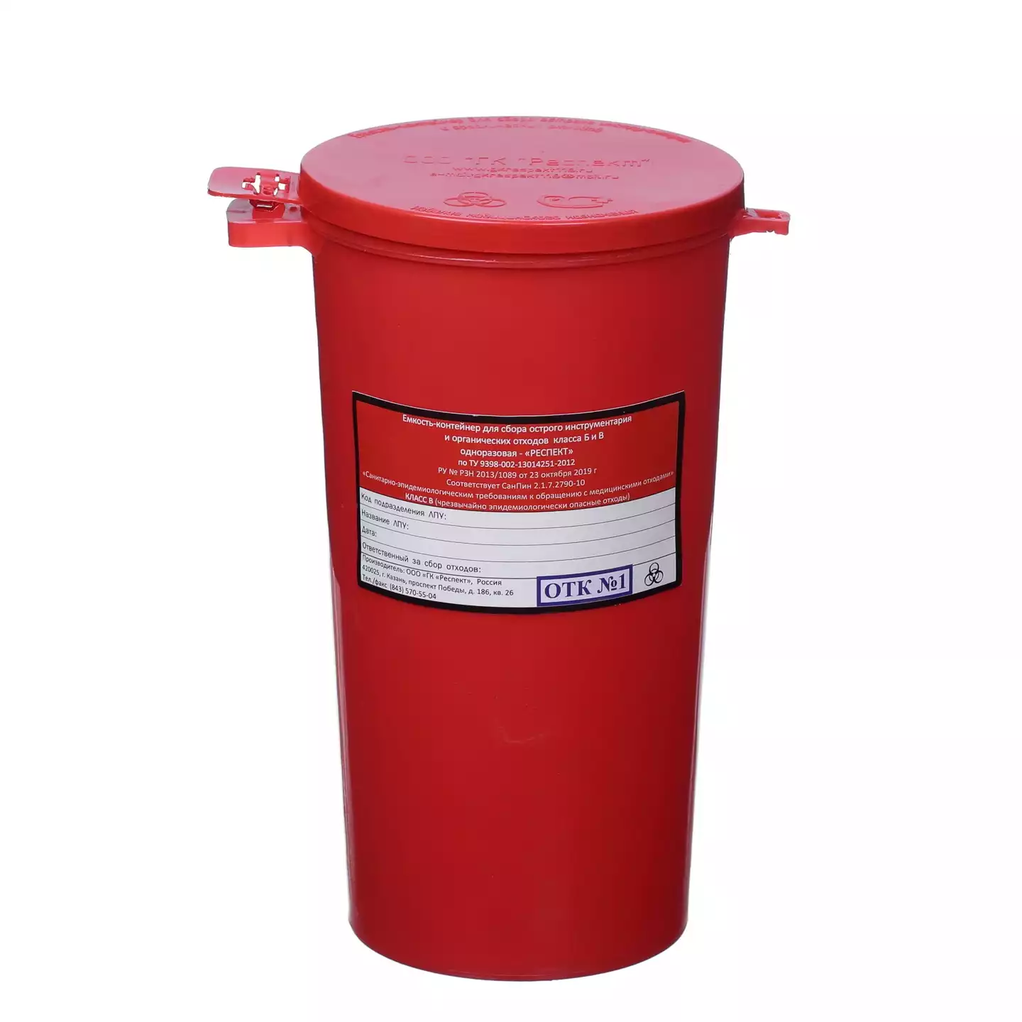Емкость-контейнер для сбора острого инструментария (с иглосъемником), объем 1,0л (класс В), красная, одноразоваяРеспект ГК (РОССИЯ)