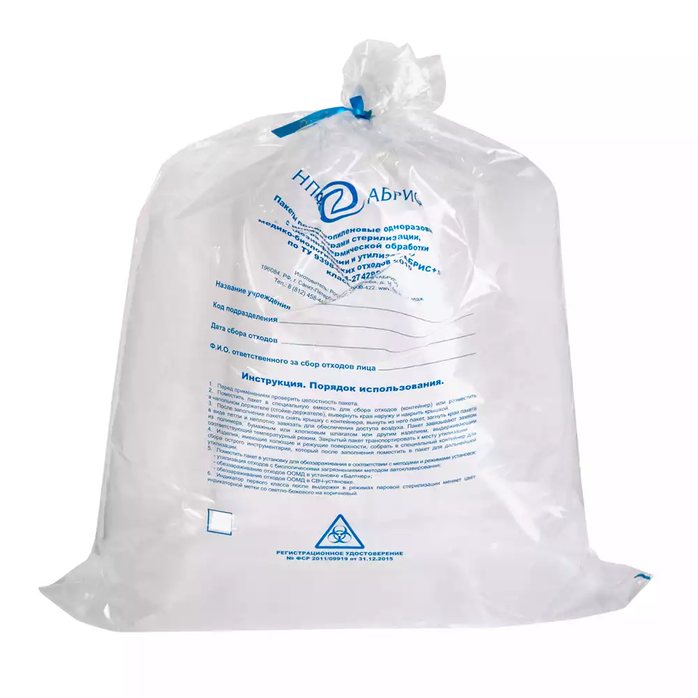 Пакет для сбора медицинских отходов класс Б, размер 800*900мм, объем 80л, плотность 13 микронРеспект ГК (РОССИЯ)