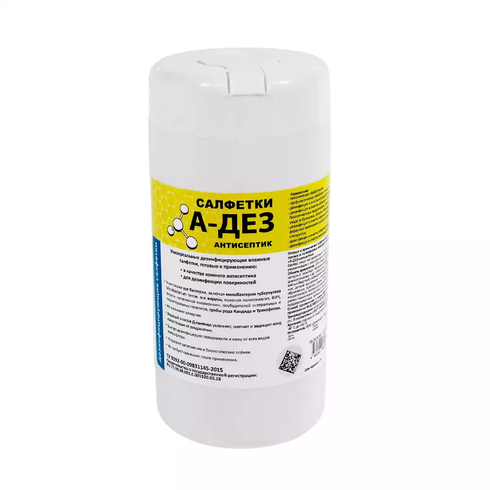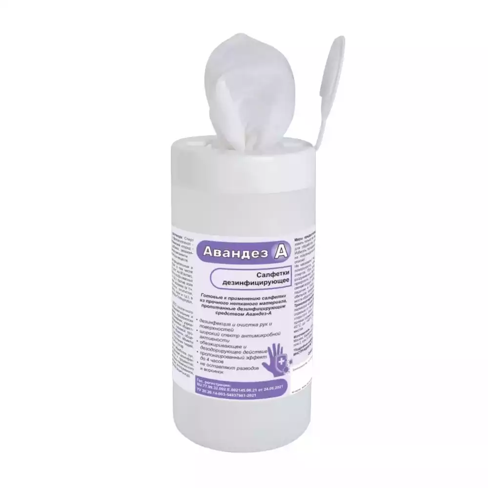 Салфетки "Авандез-А", дезинфицирующие, размер 12*18см, в банке 60шт, готовые к применению, Рудез (РОССИЯ)