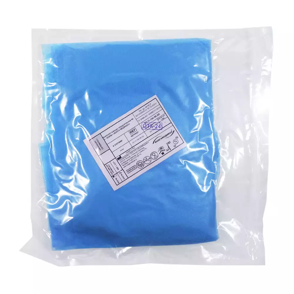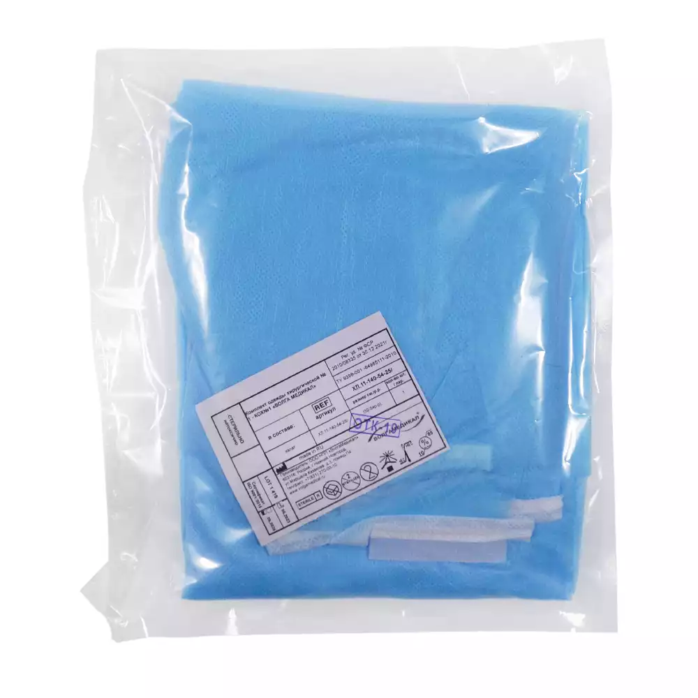 Халат хирургический ЕВРО, длина 110см, материал СМС 25/м2, размер 44-46, стерильный, Волга Медикал НПП (РОССИЯ)