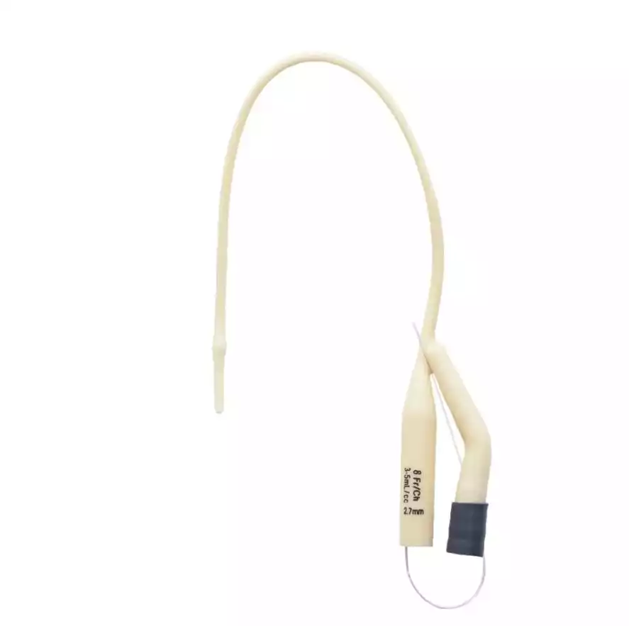 - Имеет изгиб под углом около 30-45 градусов на дистальном конце. Специально разработан для облегчения прохождения через увеличенную предстательную железу. Применяется преимущественно у мужчин с гиперплазией простаты, когда стандартный катетер испытывает трудности при введении. Помогает обойти средней доли простаты при ДГПЖ за счет анатомического изгиба.