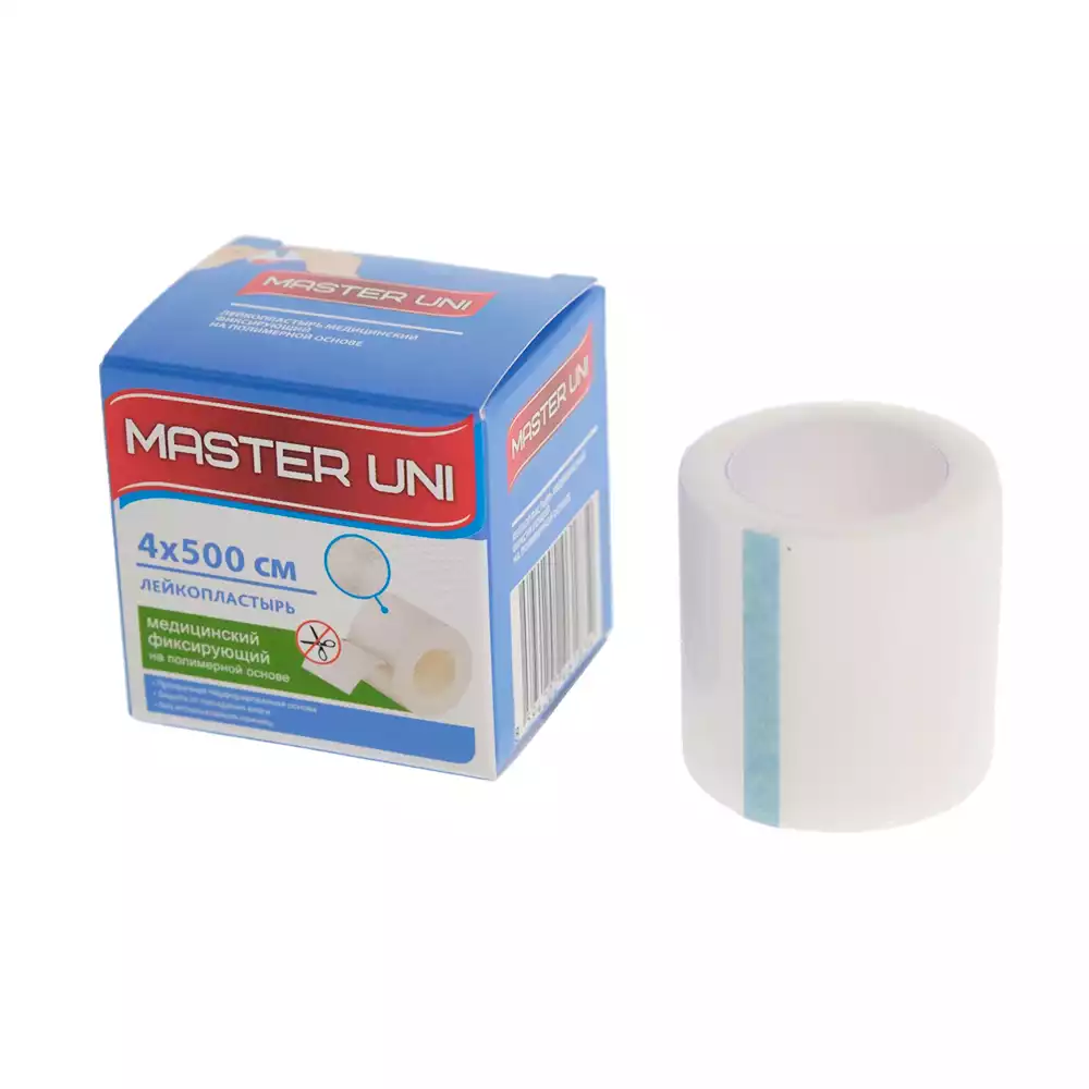 Лейкопластырь Master Uni на полимерной основе,фиксирующий, размер 4см*500см, катушка в картонной коробкеPharmline s.r.o. (КИТАЙ)