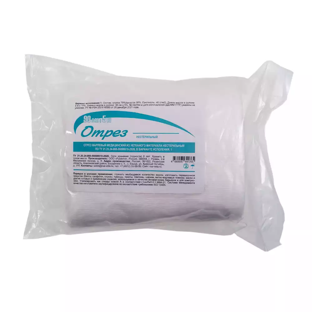 Марля нетканная медицинская, ширина 90см, отрез 5м, плотность 40г/м2 (состав 70% хлопок и 30% вискоза)РусВата (РОССИЯ)