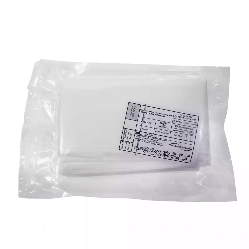 Простыня 140*200см, материал Спанбонд 35г/м2, стерильная, белая, Волга Медикал НПП (РОССИЯ)