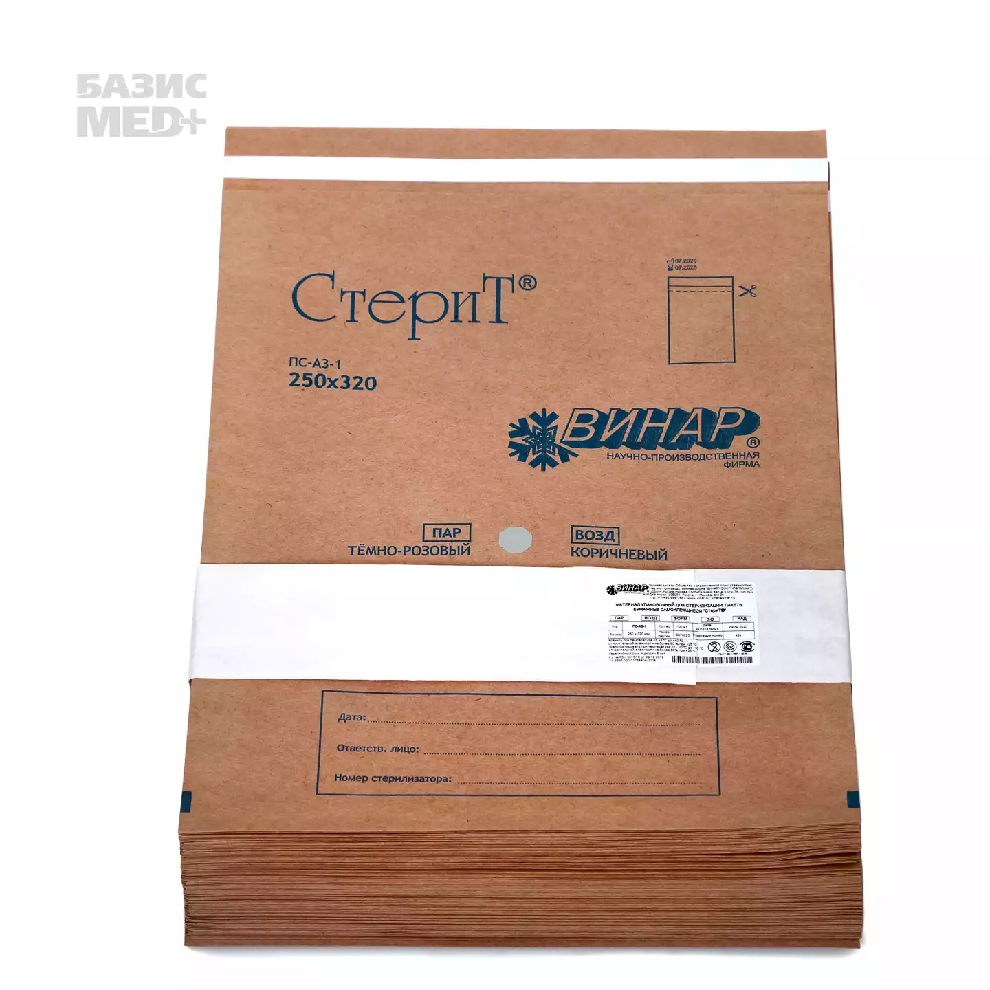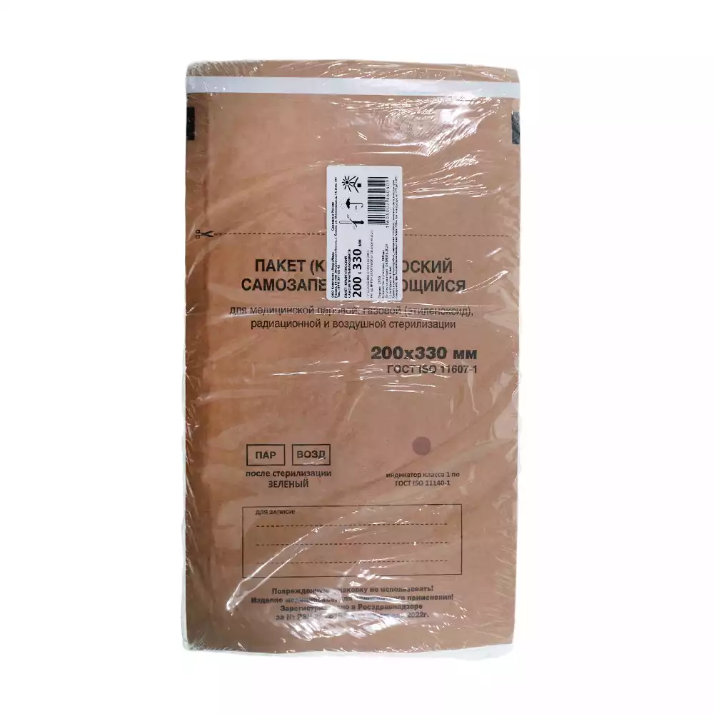 Пакет СтериТ, размер 200*330мм, бумажный, крафт, самоклеющийся, упаковка 100штВинар НПФ (РОССИЯ)