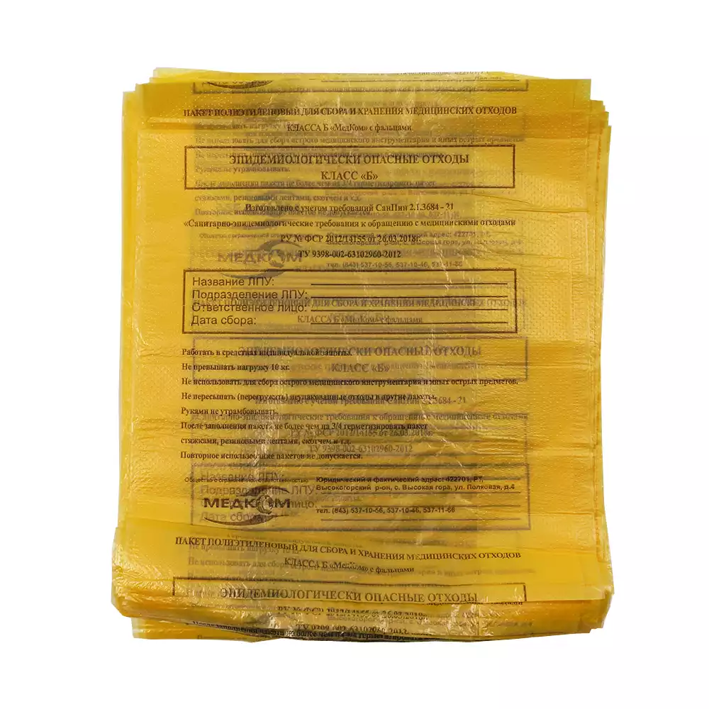 Пакеты для медицинских отходов класса Б