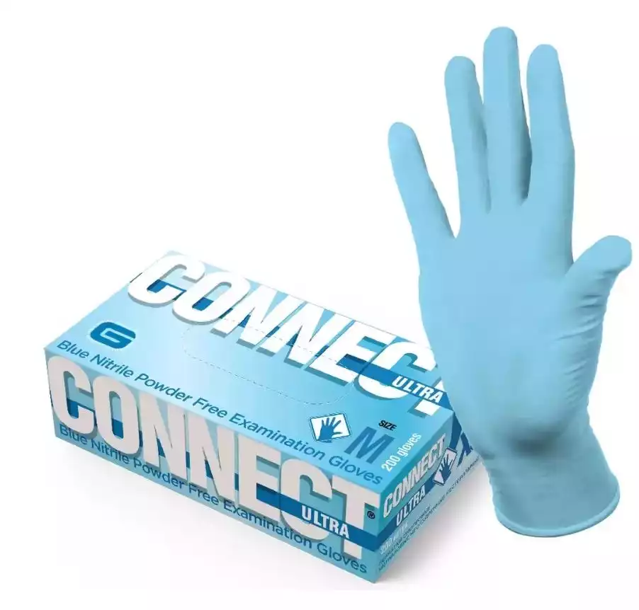 Перчатки медицинские смотровые нитриловые неопудренные нестерильные прочные CONNECT ULTRA (INTCO) р.M цвет голубой упаковка 100 парShandong Intco Medical Products Co.
