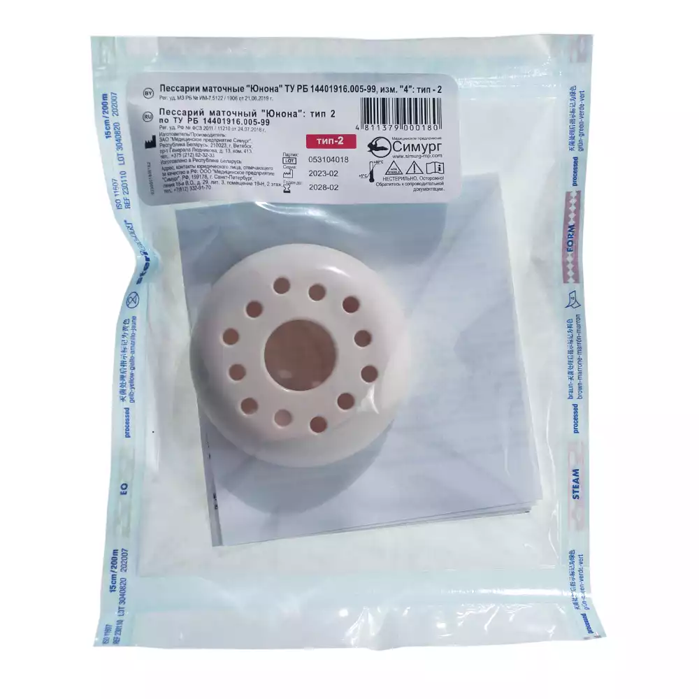 Пессарий маточный "Юнона", тип 2, наружный диаметр 68 ±2,5, Симург Медицинское предприятие (БЕЛАРУСЬ)