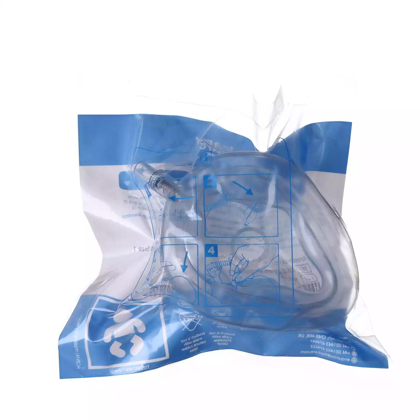 Маска анестезиологическая с валиком и клапаном №5, клинически чистая, синяя, Alba Healthcare LLC