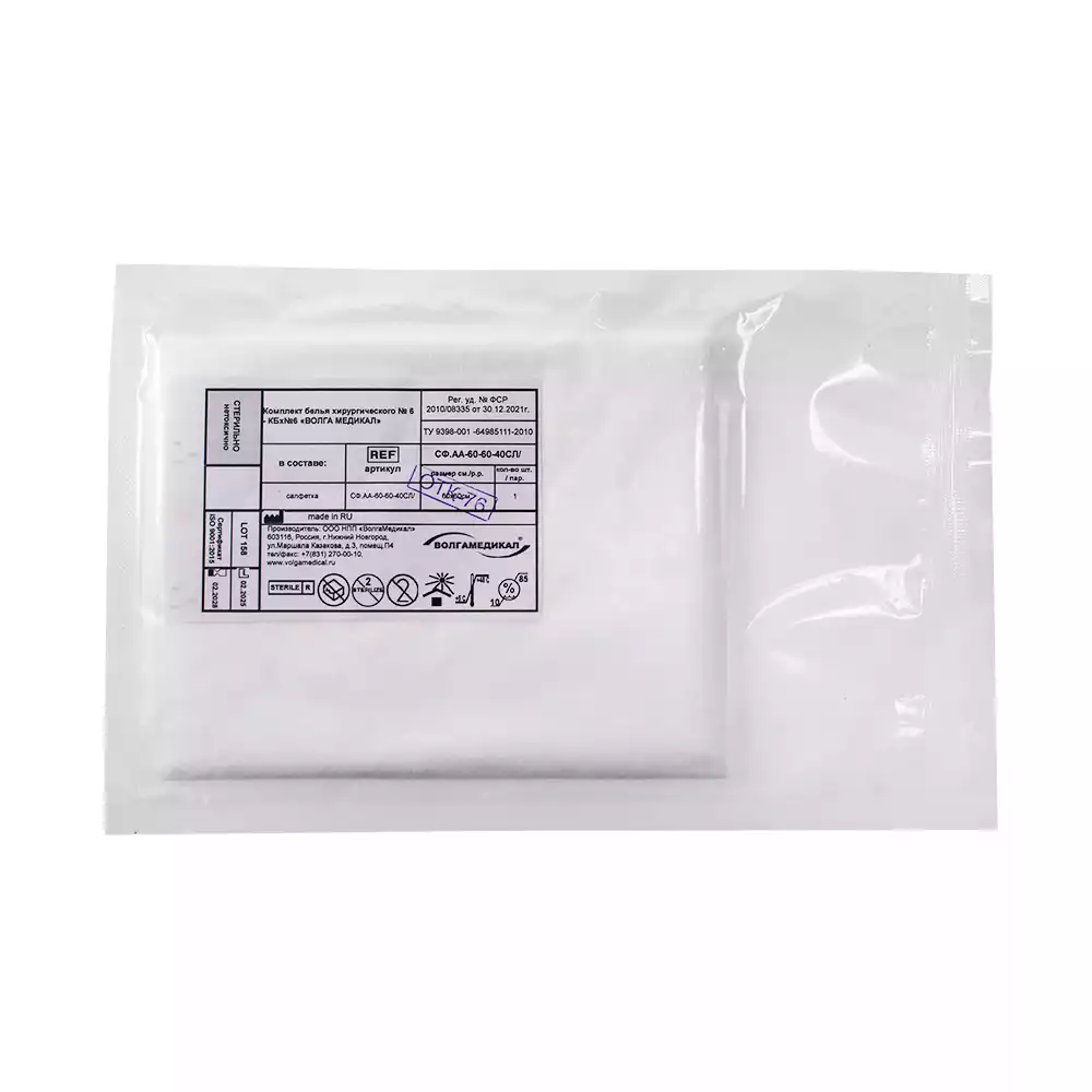 Салфетка 60*60см, материал спанлейс 40г/м2, стерильная, белая, Волга Медикал НПП (РОССИЯ)