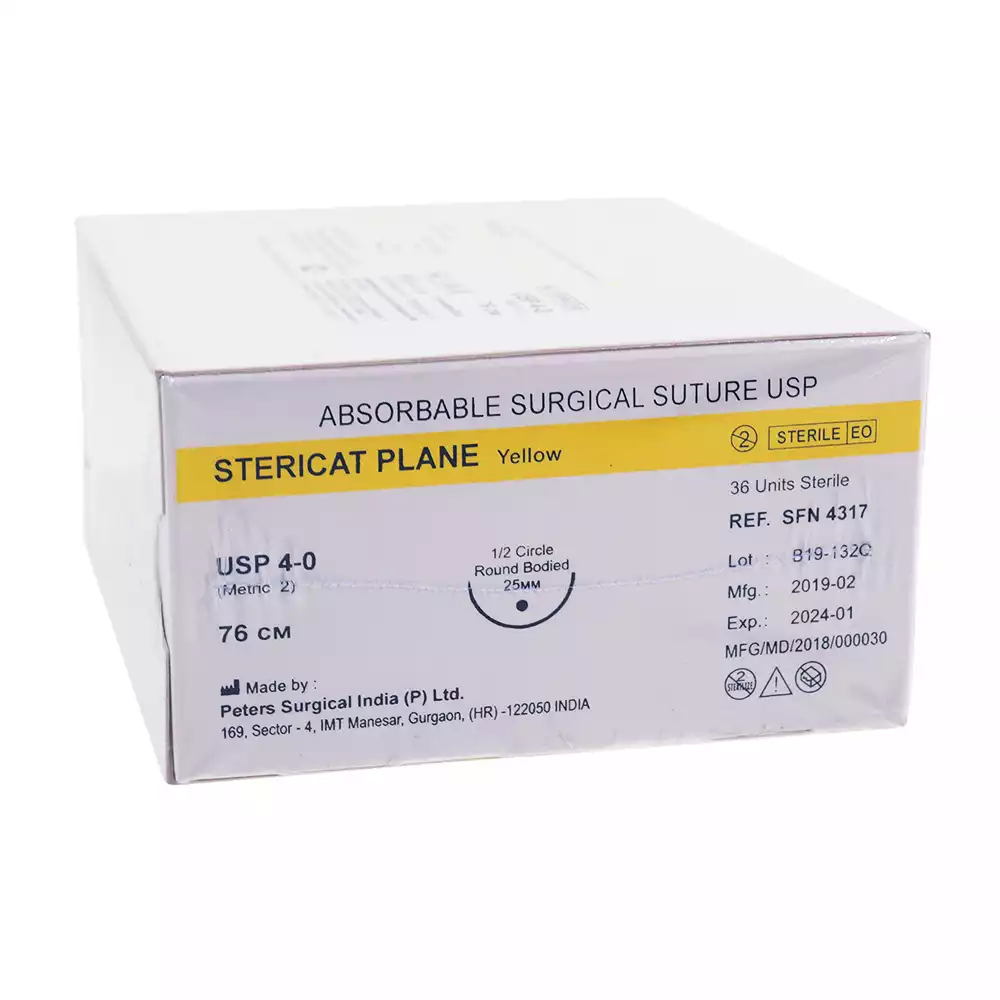 Стерикат 4/0 (2), длина нити 76см, игла 1/2 круглая колющая 25мм, упаковка 36шт, SFN4317Peters Surgical (ИНДИЯ)