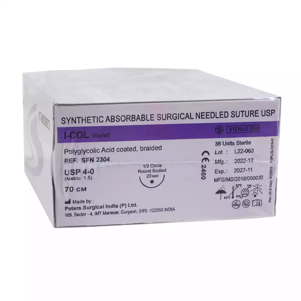 Ай- кол 4/0 (1,5), длина нити 70см, игла 1/2 круглая колющая 20мм, упаковка 36шт, SFN2304Peters Surgical (ИНДИЯ)