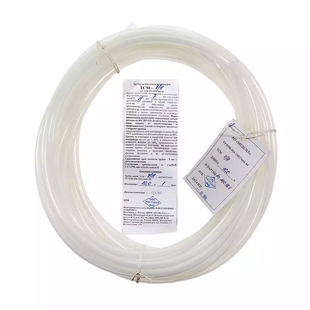 ТСМ 10/14 Трубка силиконовая медицинская одноканальная, вн.диаметр - 10мм, наружный - 14ммМедСил АО (РОССИЯ), 10 м