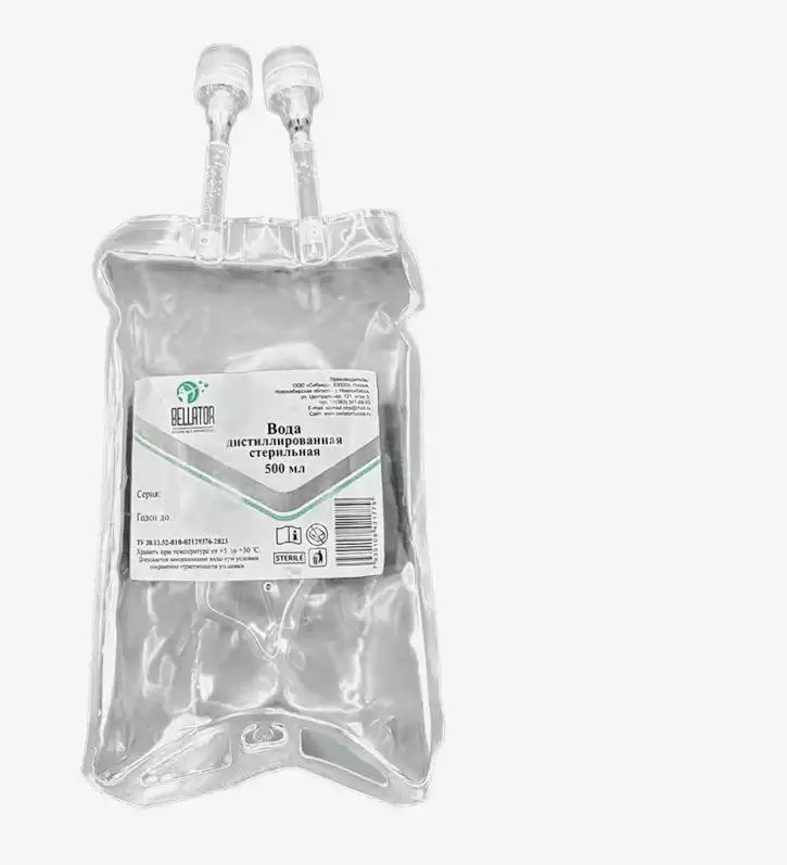 Вода дистиллированная, объем 1,0л, стерильная, пластиковая мягкая упаковка (БЕЗ РУ), ООО Сибмед, 6 шт