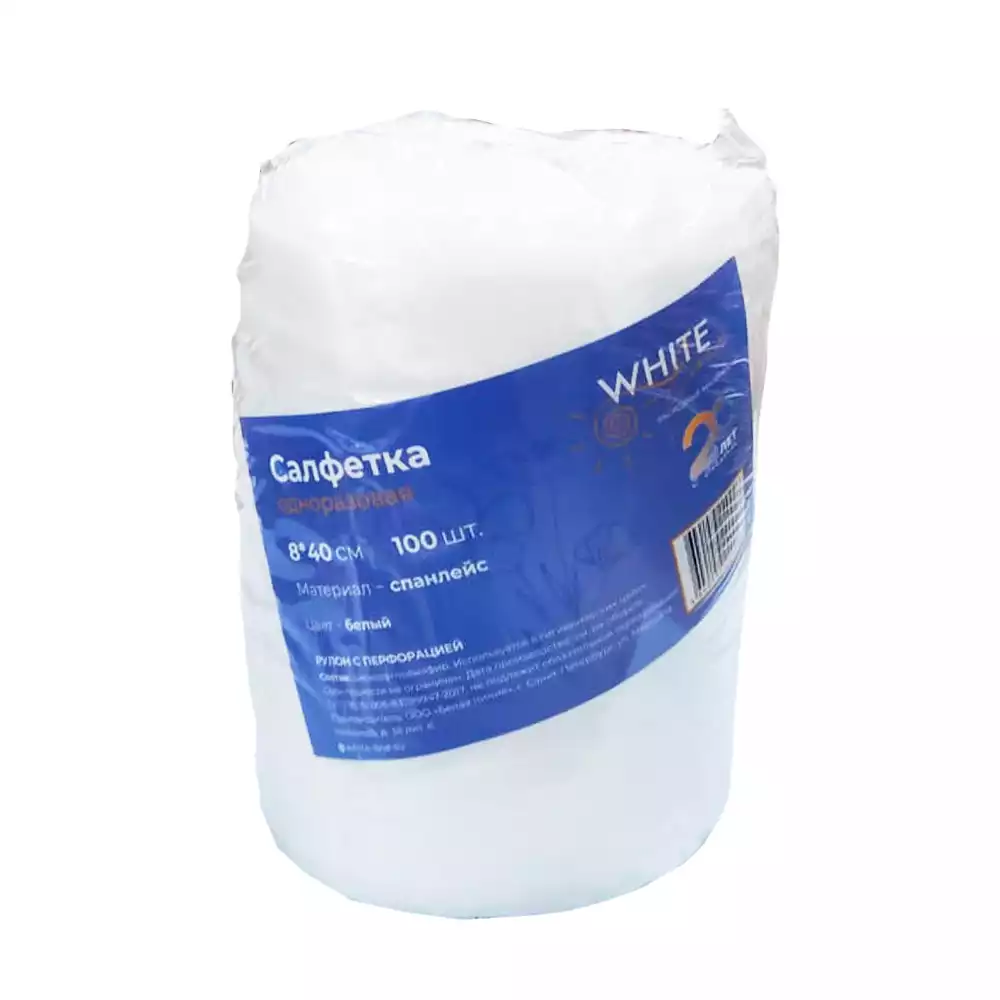 Воротничок (салфетка) размер 8*40см, материал Спанлейс 40г/м2, рулон с перфорацией, 100шт, Белая линия (РОССИЯ)