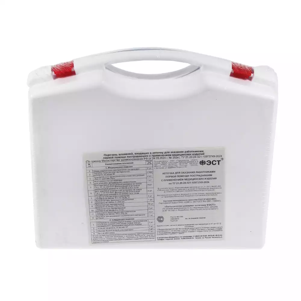 Аптечка изготовлена в соответствии с приказом Министерства здравоохранения РФ от 24.05.2024 г. №262н.