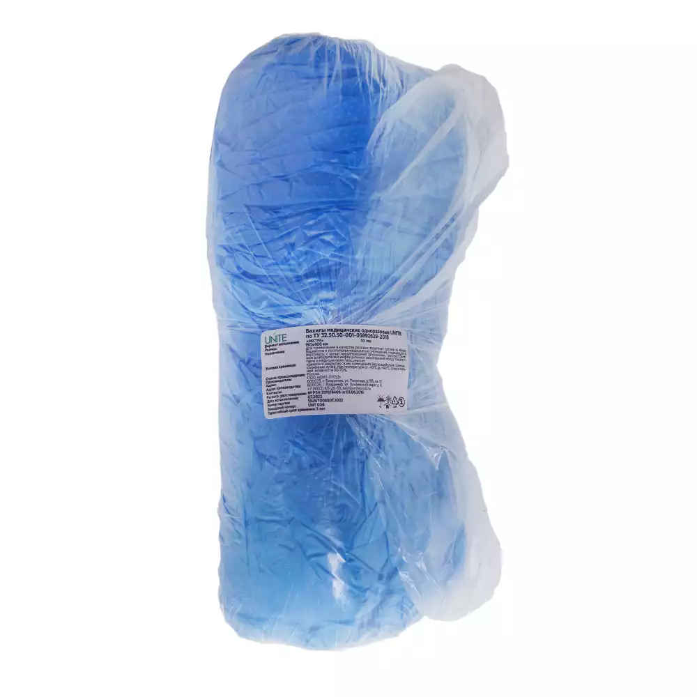 Бахилы UNITE "Экстра" ПНД 50мкм, полиэтиленовые, текстурированные, двойная резинка, вес 5,0 гр/пара, размер 400*150мм, цвет - синий