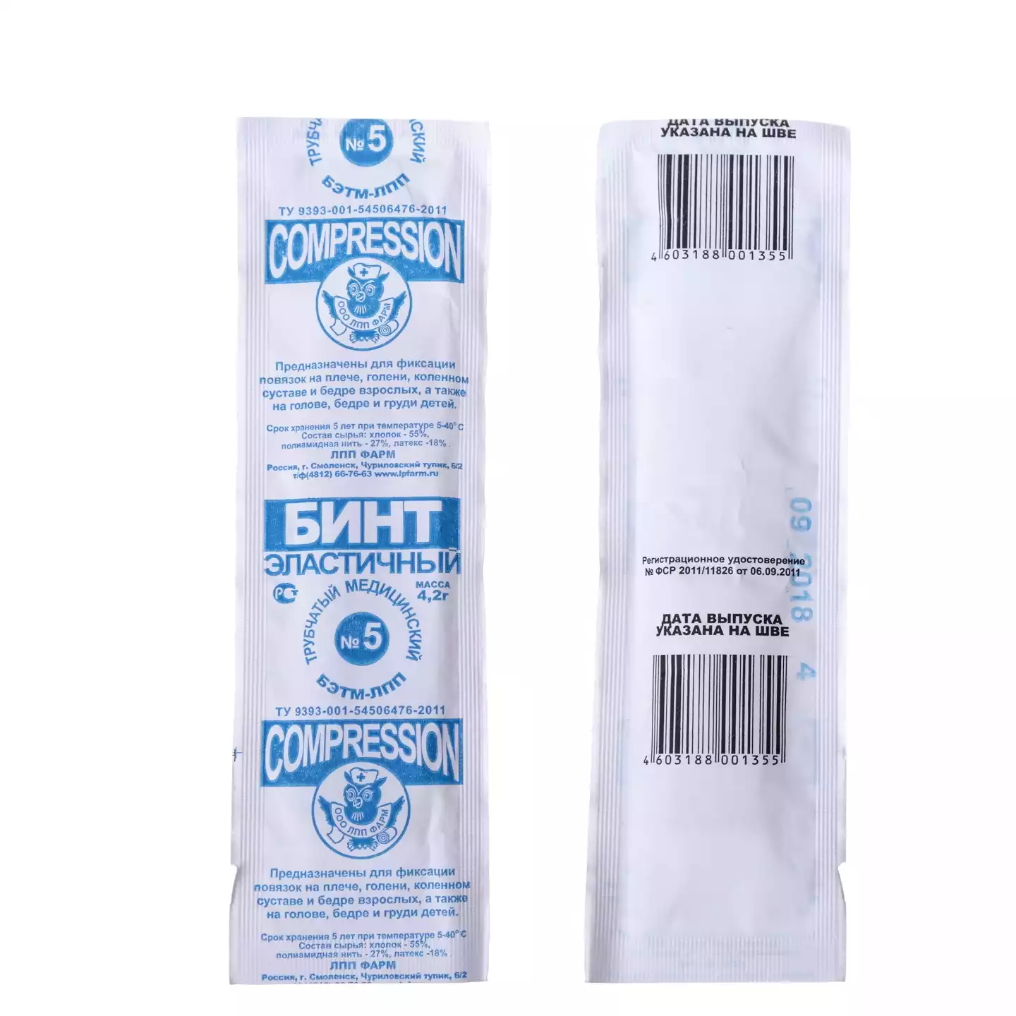 Бинт БЭТМ-ЛПП эластичный, размер №5 (35мм*20см), трубчатый, фасованный 4,2г
