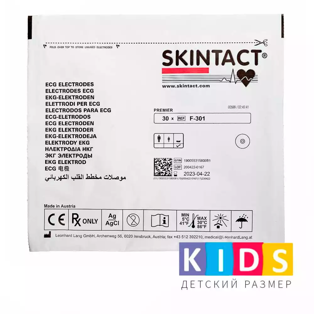 Электроды для ЭКГ, Skintact F-301, диаметр 30мм, ДЕТСКИЕ, самоклеющиеся, пенопласт на основе полиэтилена, жидкий гель Aqua-Wet, одноразовые, упаковка 30шт