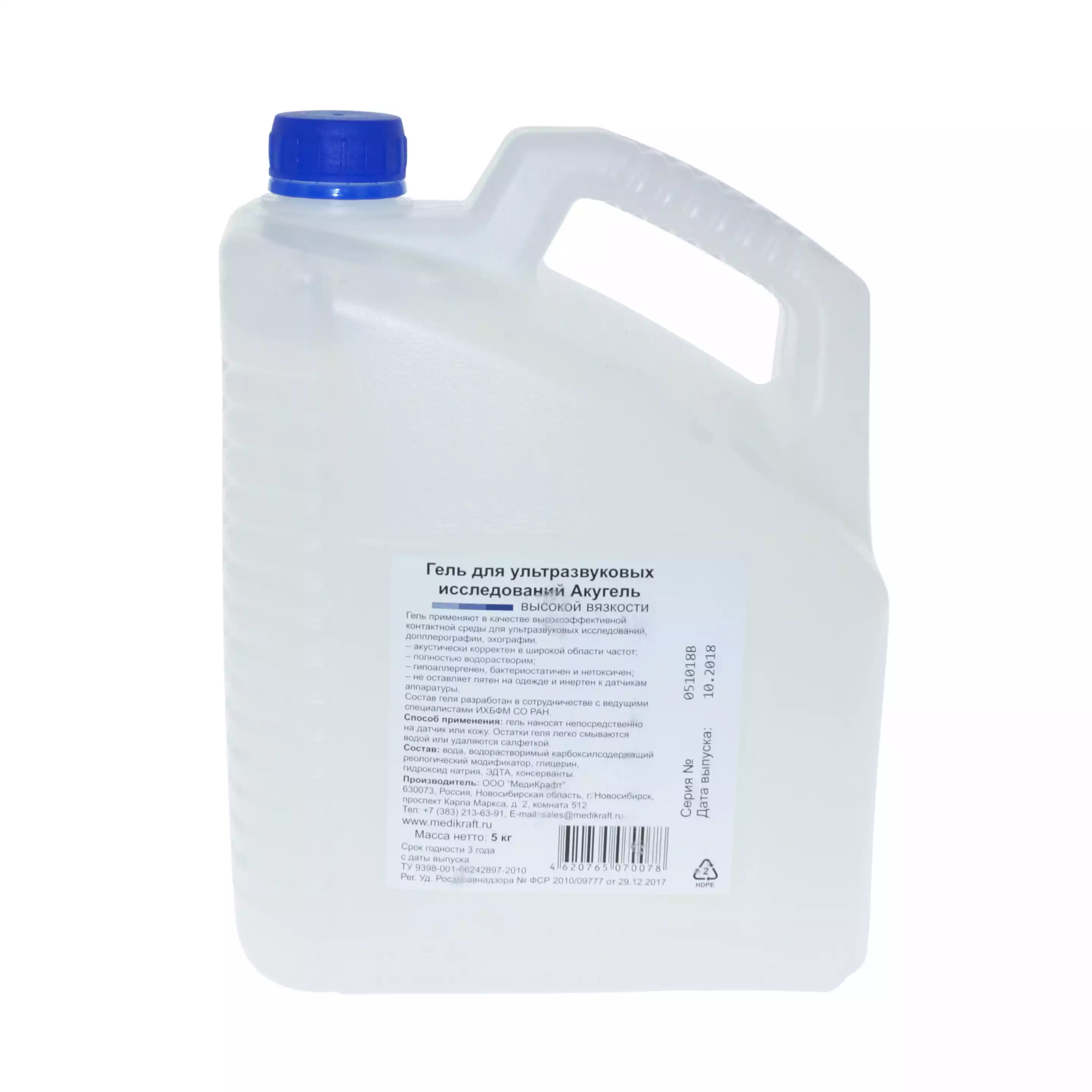 Гель Акугель, 5кг, высокой вязкости, без пропиленгликоль, бесцветный, для всех видов УЗИ, допплерографии, эхографии (помпа и флакон отгружаются только при заказе 4 канистр геля одновременно)
