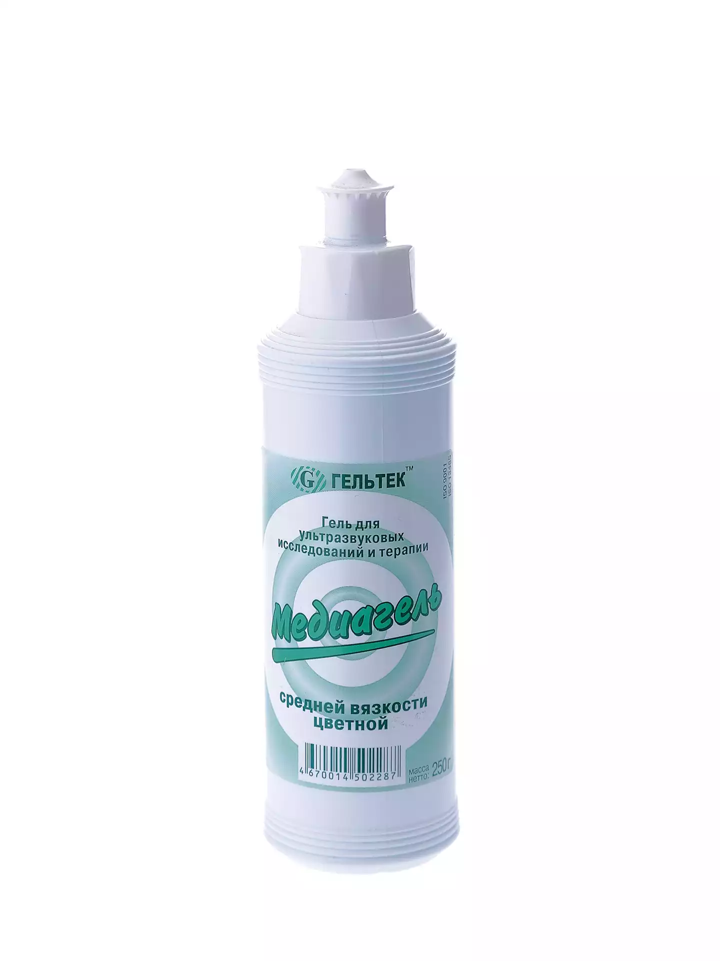 Медиагель служит эффективной контактной средой для ультразвуковых исследований при использовании отечественной или импортной аппаратуры. Гель наносится на датчик или на тело пациента, легко распределяется и не растекается по коже, обеспечивает длительное скольжение и полный контакт датчика с телом пациента. После проведения исследования гель легко удаляется салфеткой или смывается водой. Гель не пачкает одежду, не вызывает аллергии, не портит датчики, водорастворим.