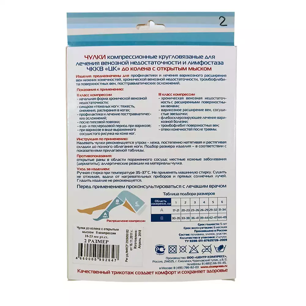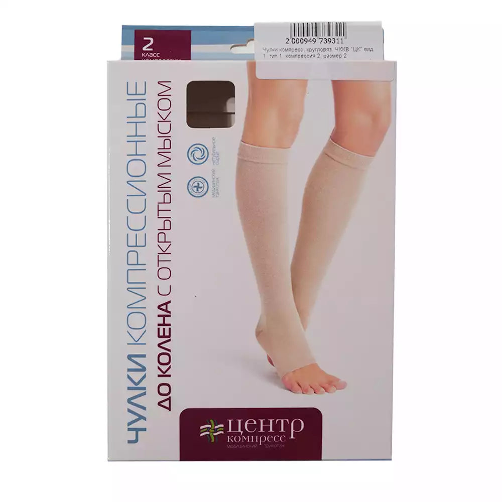 Гольфы ЧККВ "ЦК" компрессионные кругловязаные, до колена, с открытым мыском, компрессия 2 (18-23 мм рт.ст.), размер 4, цвет кремовый, пара
