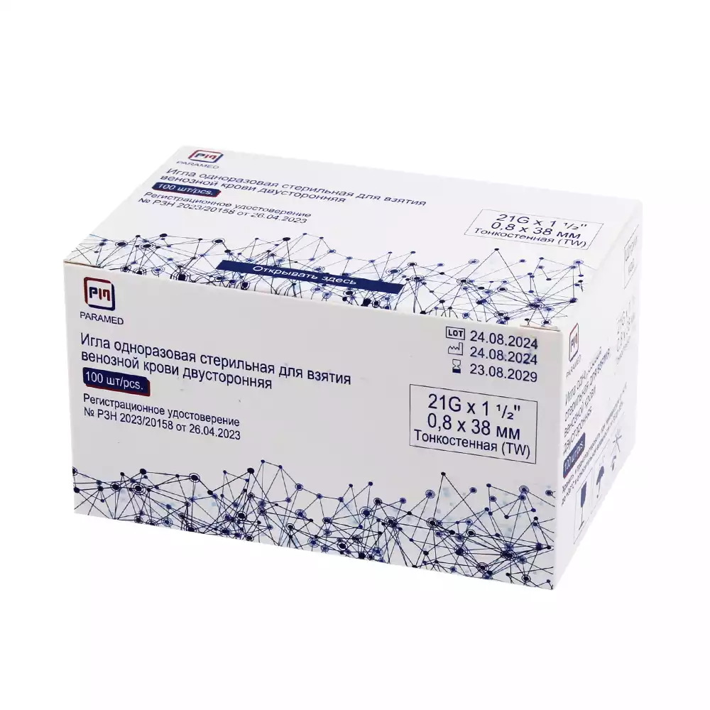 Игла 2-сторонняя 21Gх1 1/2 (0,8*38мм), цвет зеленый