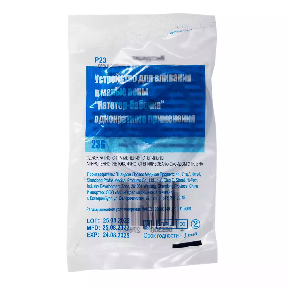 Игла - бабочка 23G (0,6*19мм) однократного применения, стерильная, 100 шт