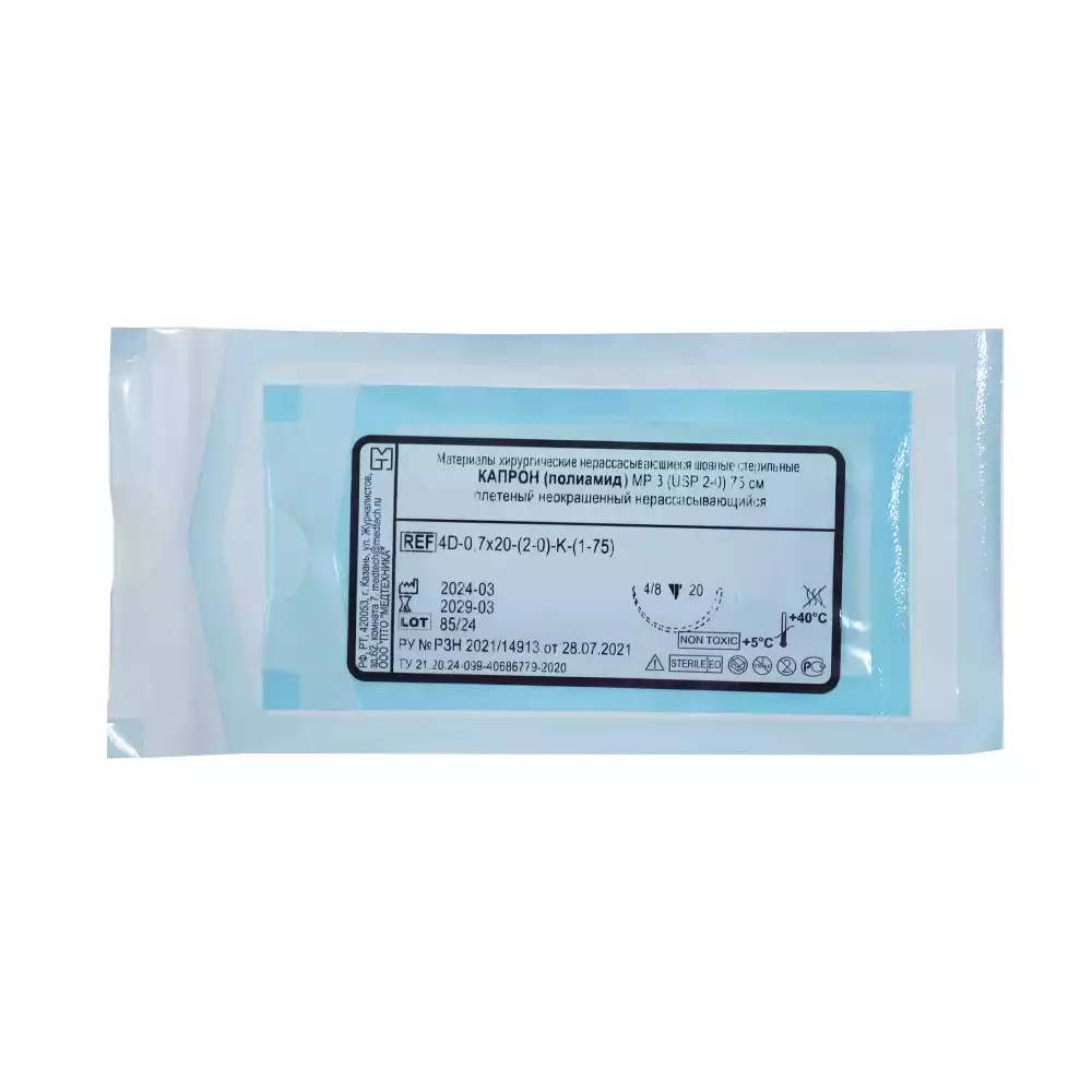 - Капрон изготовляется в виде плетеных нитей, предназначенных для наложения швов при различных оперативных вмешательствах.