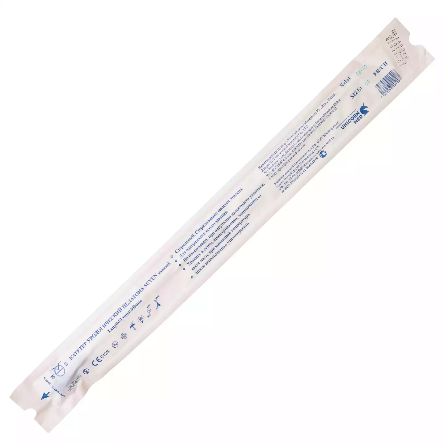 Катетер урологический Нелатона стерильный, одноразовый - предназначен для кратковременной катетеризации мочевого пузыря пациентов в диагностических и терапевтических целях. Изготовлен из прозрачного термопластичного ипмплантационного-нетоксичного поливинилхлорида, который размягчается при температуре тела, облегчая введение и устраняя необходимость использовать смазку (лубрикант). Катетер Нелатона имеет гладкую гидрофильную структуру, атравматичный дистальный закрытый конец с двумя боковыми отверстиями, которые обеспечивают лучший пассаж мочи, снижают риск закупорки дистального конца катетера. Размер: CH-08, длина 40см, диаметр 1,7/2,7мм, цвет голубой, одноразовый, стерильный, мужской.