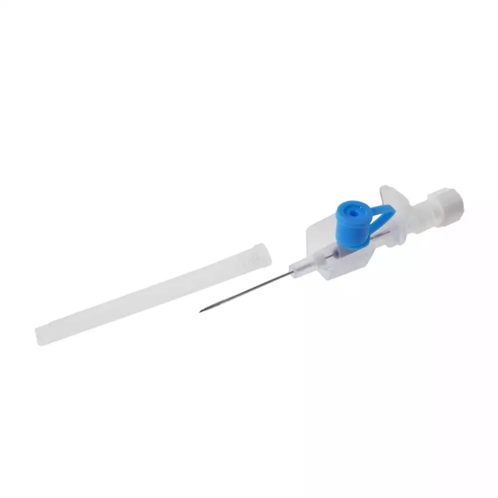 Данный катетер обладает следующими характеристиками: диаметр составляет 0,9 миллиметра, а длина – 25 миллиметров. Изделие оснащено фиксирующими крыльями для надежного закрепления и дополнительным портом для удобства проведения манипуляций. Цвет катетера – синий, что соответствует международным стандартам маркировки размеров.