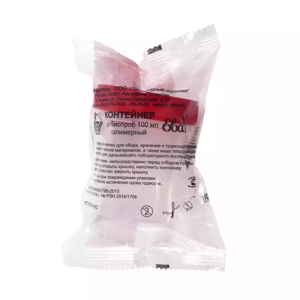 Контейнер 100мл, для взятия биоматериала, индивидуальная упаковка
