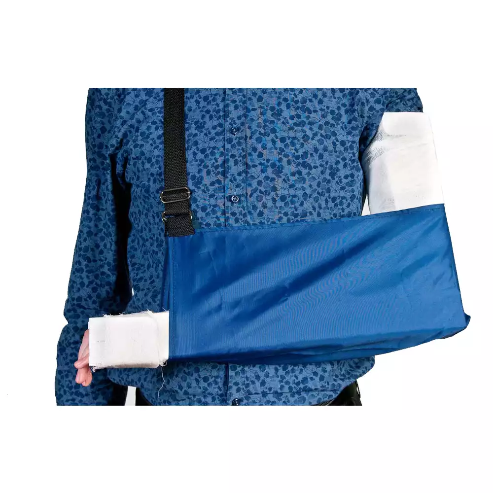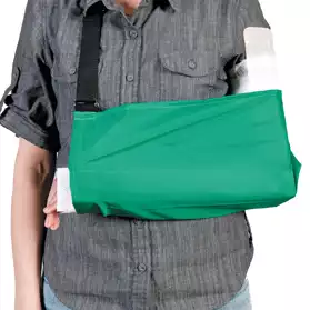 Косыночная повязка предназначена для разгрузки плеча и предплечий при ушибах, вывихах, переломах костей верхних конечностей, повреждениях связок плечевого сустава, а также при реабилитации после оперативного вмешательства. Выполнена из синтетической ПВХ ткани, устойчива к дезинфекционной обработке и рассчитана на долгий срок службы. Удобная, легкая и имеет прочный регулируемый ремень. Предназначена для умеренной фиксации верхних конечностей, ключичного сочленения лопатки, разгрузки плечевого сустава. Применяется для транспортировки в травматологический пункт или в специализированное отделение. Повязка выполнена в виде сумки - «конверта» c плечевым, регулируемым по высоте ремешком. Размер- для взрослых 47*20см.
