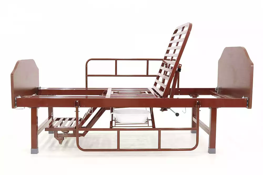 Кровать Мед-Мос Е-49 (ММ-2120Н-10) функциональная медицинская, механичекая, с туалетным устройством и функцией «кардиокресло», материал ЛДСП Венге