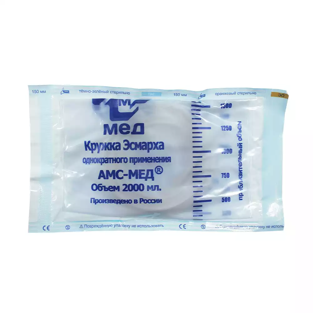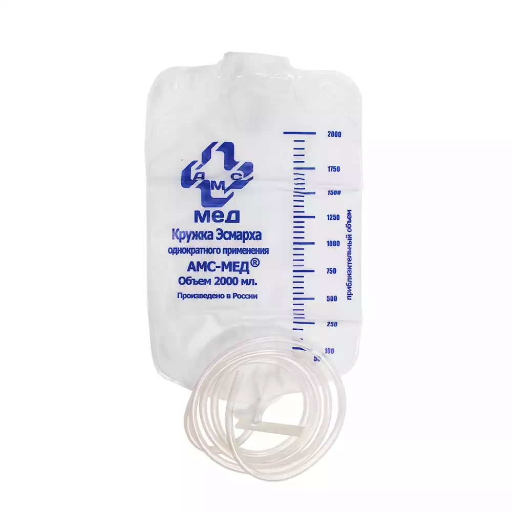 Кружка Эсмарха АМС-МЕД с клапаном антирефлюксным (арт. К), объем 2л, длина 150м, одноразовая, стерильная