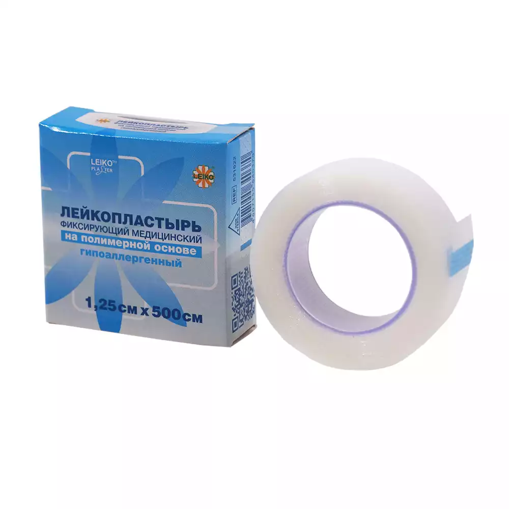 Лейкопластырь LEIKO, на полимерной основе,фиксирующий, размер 1,25см*500см, гипоаллергенный, катушка в картонной коробке