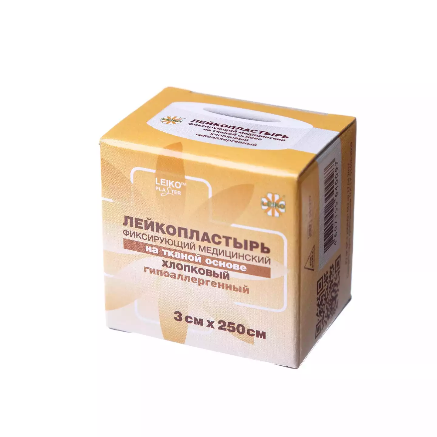 Лейкопластырь LEIKO, на тканевой хлопковой основе, размер 3см*250см, гипоаллергенный, катушка в картонной коробке