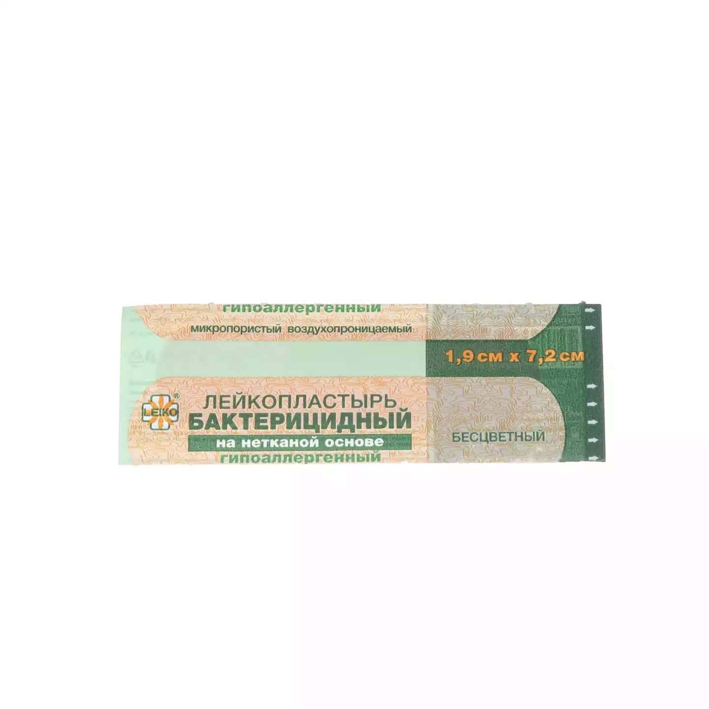 Лейкопластырь LEIKO бактерицидный, размер 1,9см*7,2см, бесцветный, на нетканной основе, гипоаллергенный, 10 шт