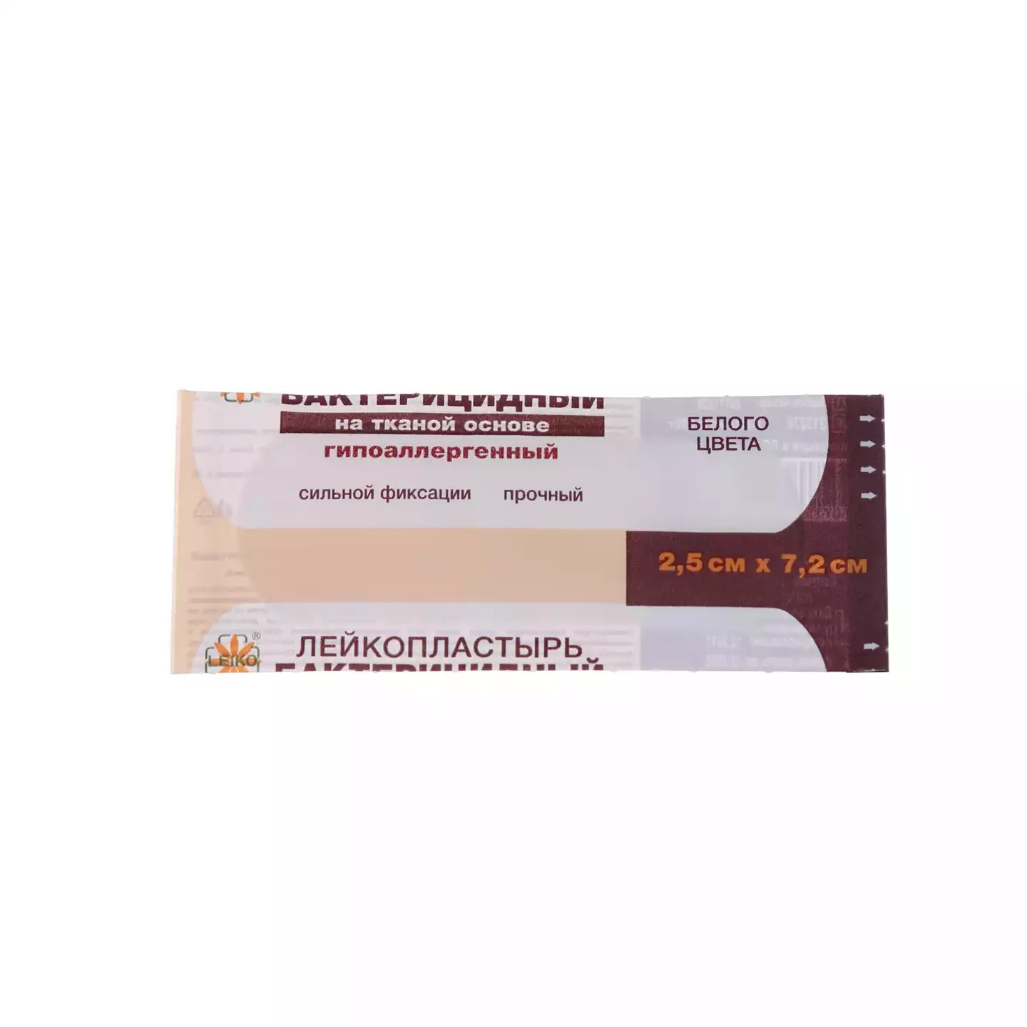 Лейкопластырь LEIKO бактерицидный, размер 2,5см*7,2см, белый, на тканевой основе, гипоаллергенный
