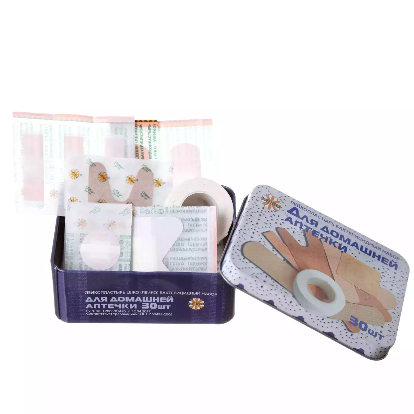 Лейкопластырь LEIKO бактерицидный, «Для домашней аптечки №30» в жестяной упаковке, набор