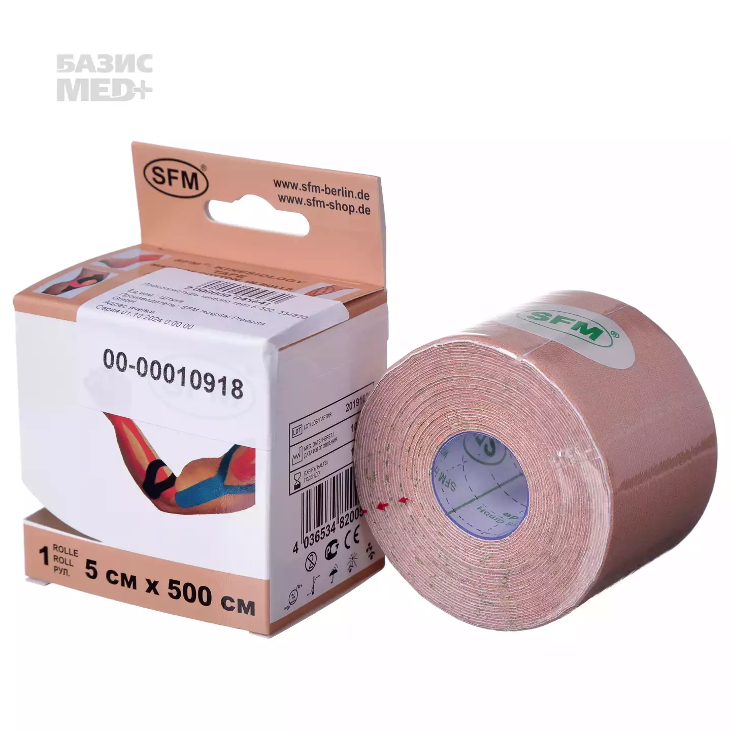 Тейп хлопковый кинезио SFM, размер 5см*5м, цвет бежевый, в диспенсере