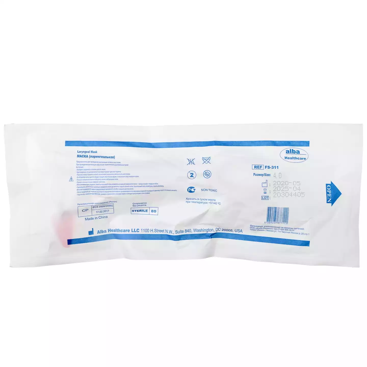 Маска ларингеальная ПВХ размер 4.0, вес пациента 50-70кг, цвет розовая
