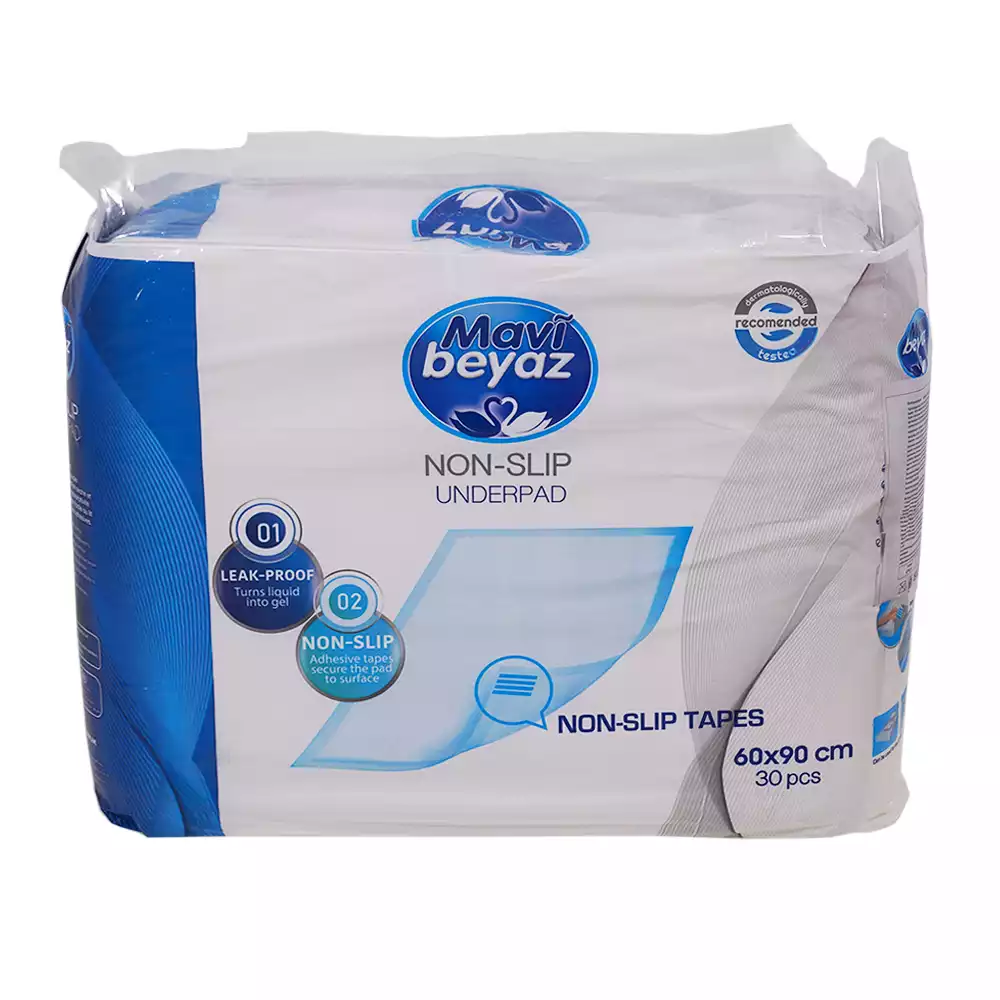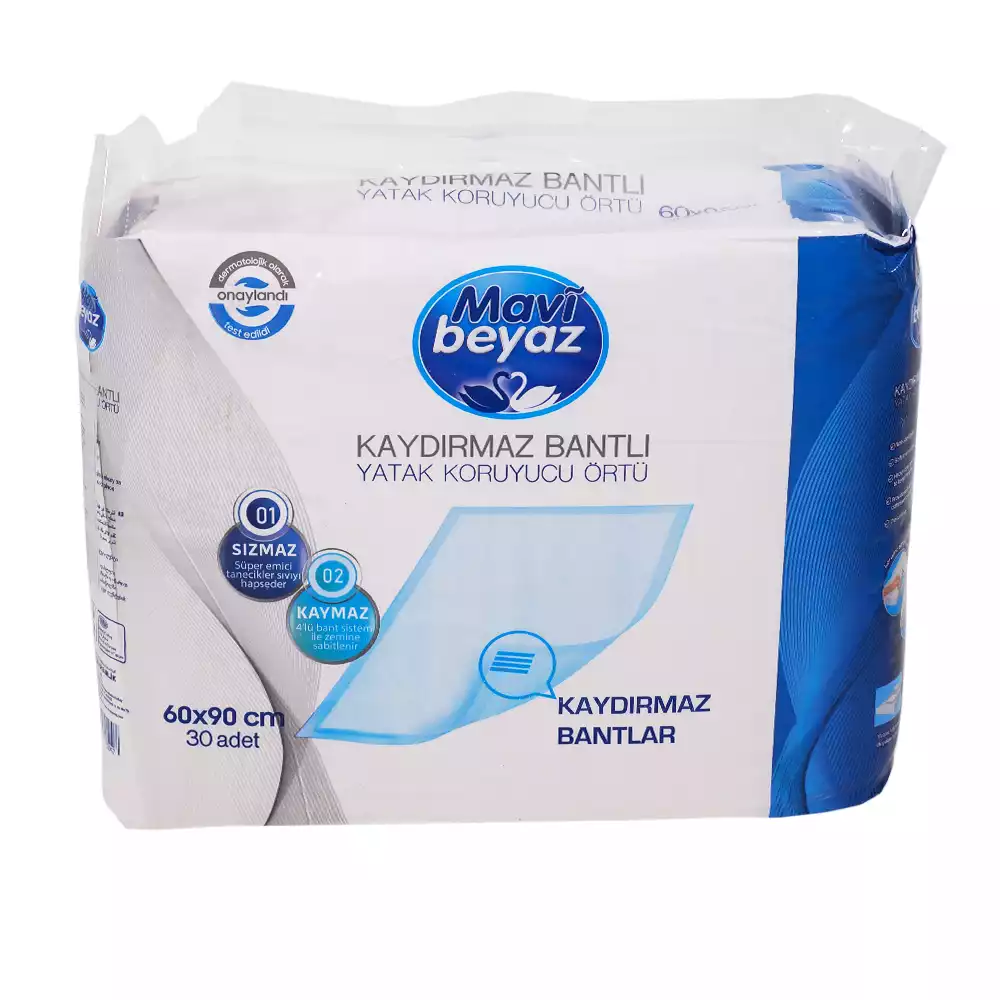 Пеленка MAVI BEYAZ , многослойная, размер 60*90см, одноразовая, нестерильная, с липучками, упаковка 30шт, впитываемость 500мл