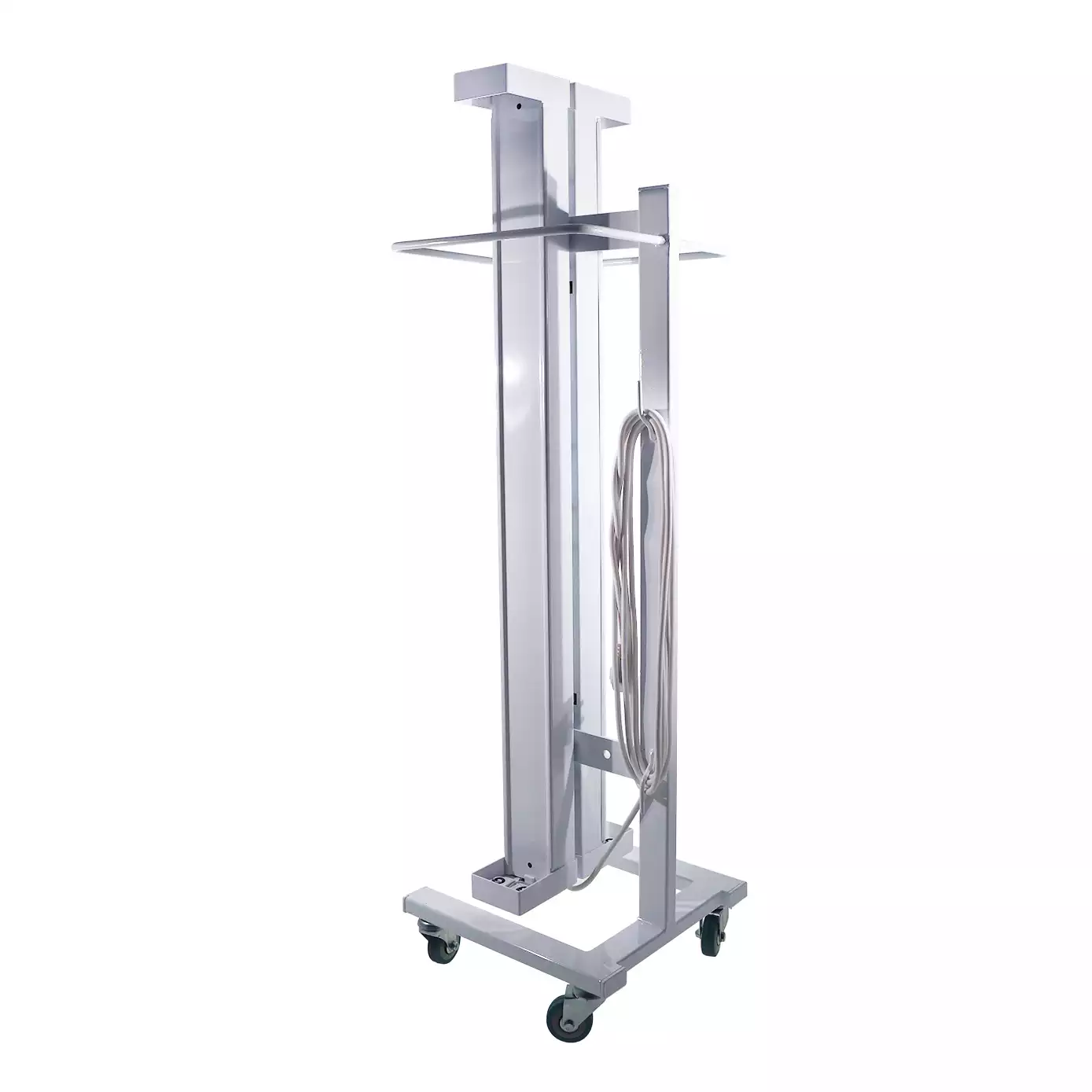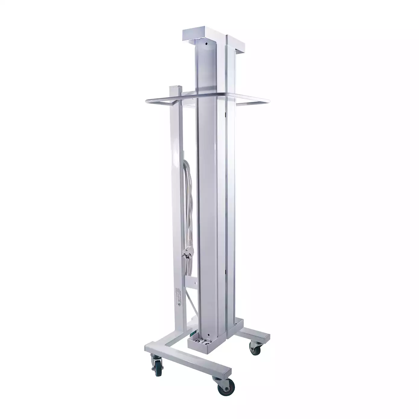 Предназначены для быстрого обеззараживания воздуха и поверхностей помещений жестким ультрафиолетом в отсутствие людей и животных. Конструкция состоит из металлической передвижной стойки с навешанными на нее открытыми бактерицидными облучателями. Четыре поворотных колеса обеспечивают высокую подвижность и хорошую устойчивость изделия.