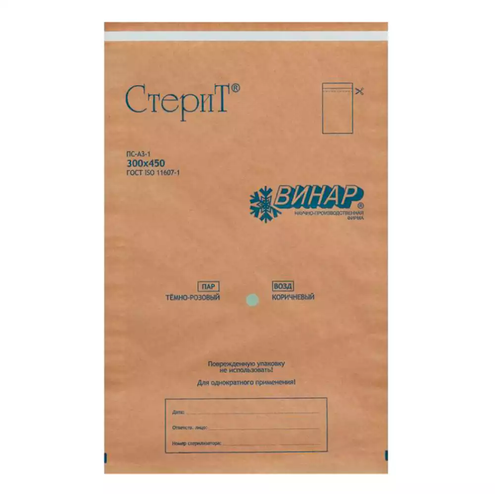 Пакет СтериТ, размер 300*450мм, бумажный, крафт, самоклеющийся, упаковка 100шт