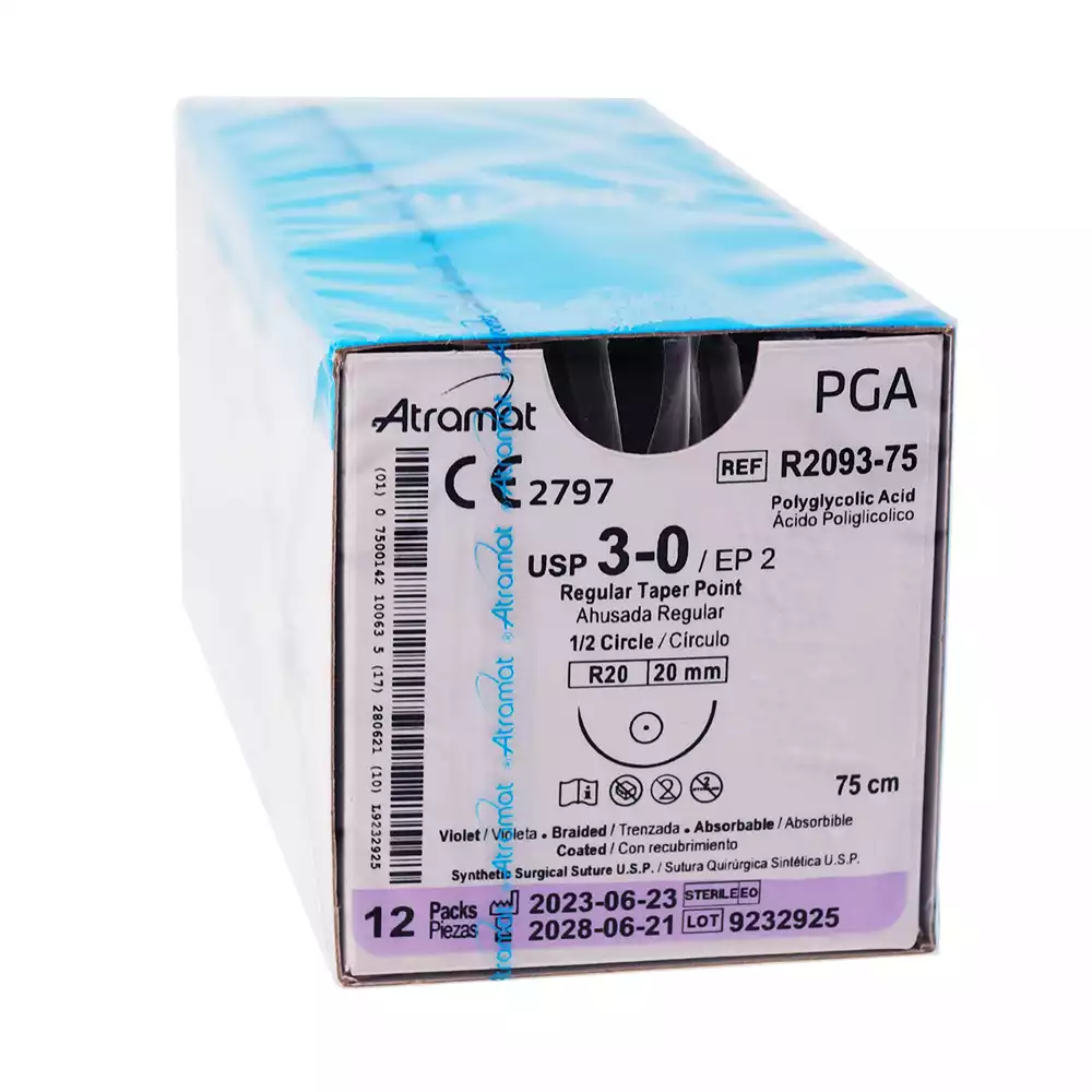 Атрамат (ATRAMAT PGA) М2 (3/0), длина 75см, игла колющая, 1/2 окружности 20мм, фиолетовый, упаковка 12шт, R2093-75 (аналог Викрил W9974)