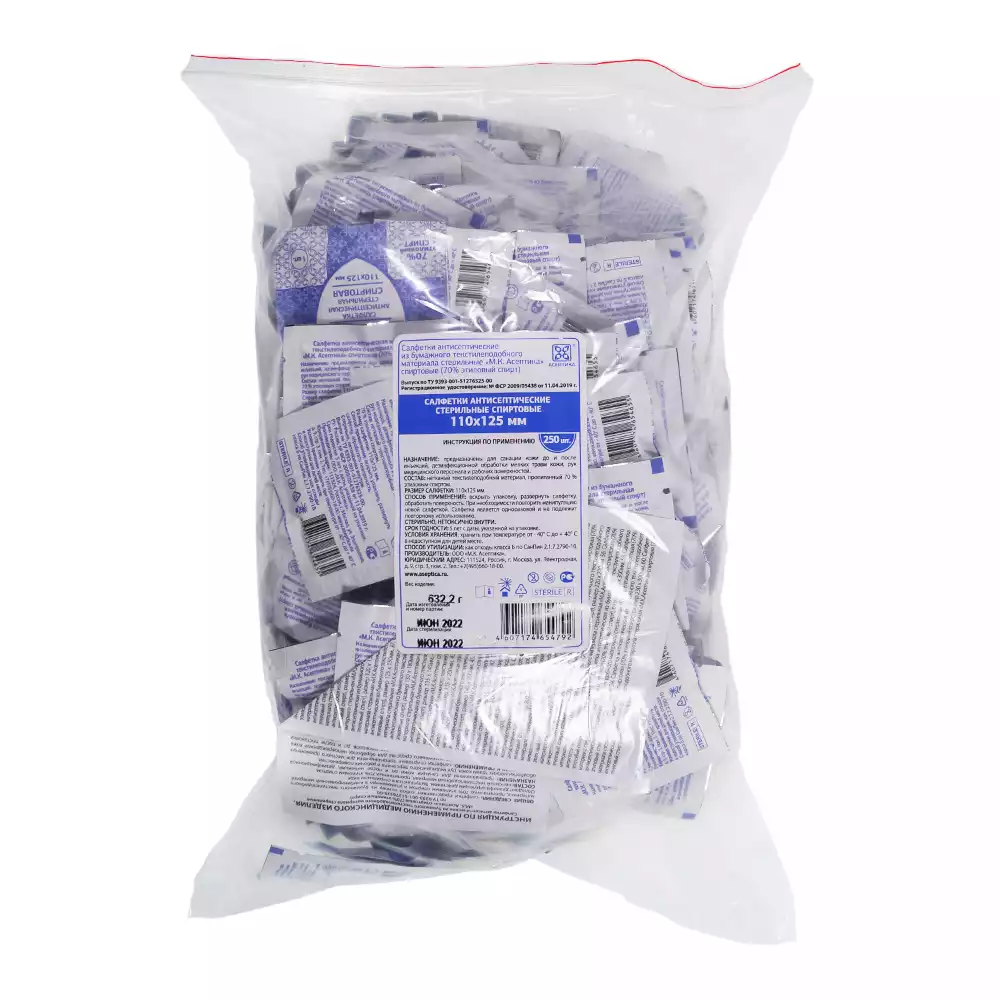 Салфетки антисептические спиртовые с 70 % этиловым спиртом высшей очистки. Изготовлены из мягкого нетканого материала плотностью не менее 35 г/м2. Для местного применения в качестве противомикробного, антисептического и дезинфицирующего средства при обработке кожи рук, инъекционного поля при проведении подкожных и внутримышечных манипуляций (вакцинация, инъекции, забор крови и т. д.), обработке медицинских инструментов и других поверхностей.